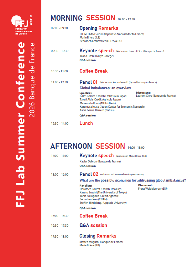C’est dans ce contexte que le laboratoire conjoint BdF–FFJ vise à réunir des chercheurs de premier plan issus du monde académique, des banques centrales et des institutions financières afin de présenter des travaux de recherche sur ces thématiques. Cette collaboration doit permettre d’obtenir une vision plus large des dynamiques actuelles, ainsi que des résultats et recommandations à portée opérationnelle.